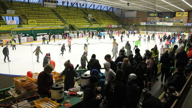 Příchozí si mohli užít dvouhodinové bruslení zdarma, během kterého se podávaly teplé